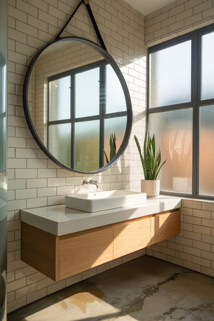 Pro Tip: Pair your mirror with good lighting — wall sconces or a stylish overhead light — to enhance both functionality and ambiance. A well-lit mirror instantly elevates your entire bathroom.