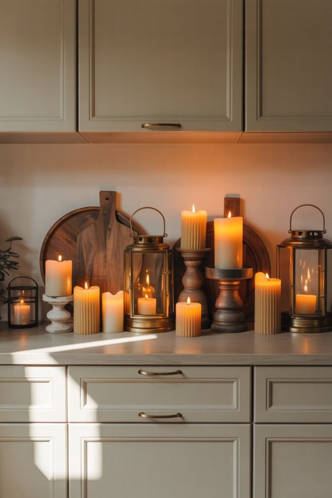 Pro Tip: I often pair candles with small decorative greenery or pinecones depending on the season.