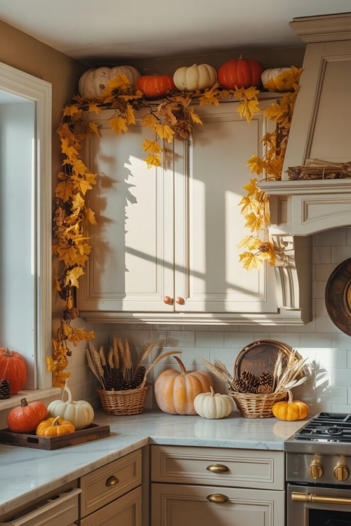 Over the years, I’ve found that swapping small, themed items like pumpkins, pinecones, or seasonal florals adds charm without taking over the kitchen.