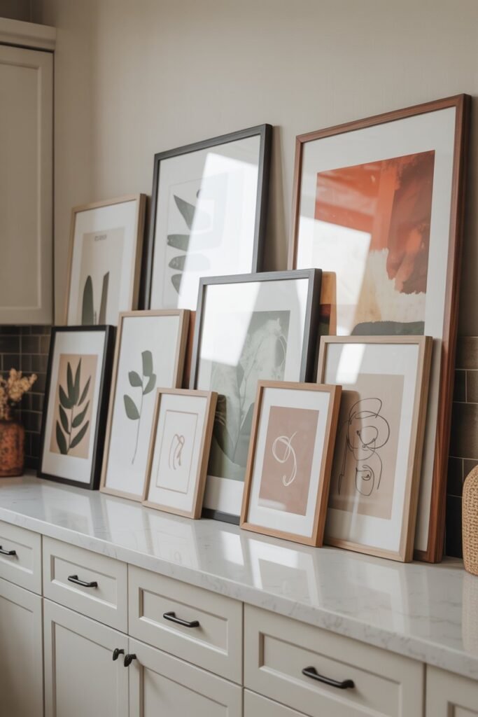 One of my favorite ways to add personality above the cabinets is by displaying artwork or framed prints.