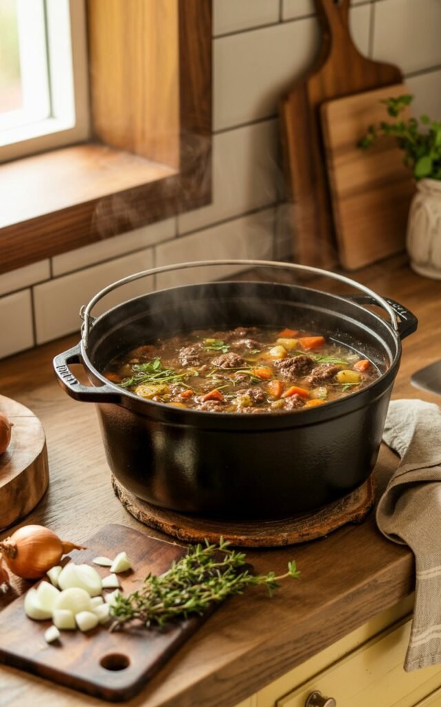 The thick walls and tight‑fitting lid keep heat and moisture where they should be, and it’s one of those pots that feels like it’s built to last decades.