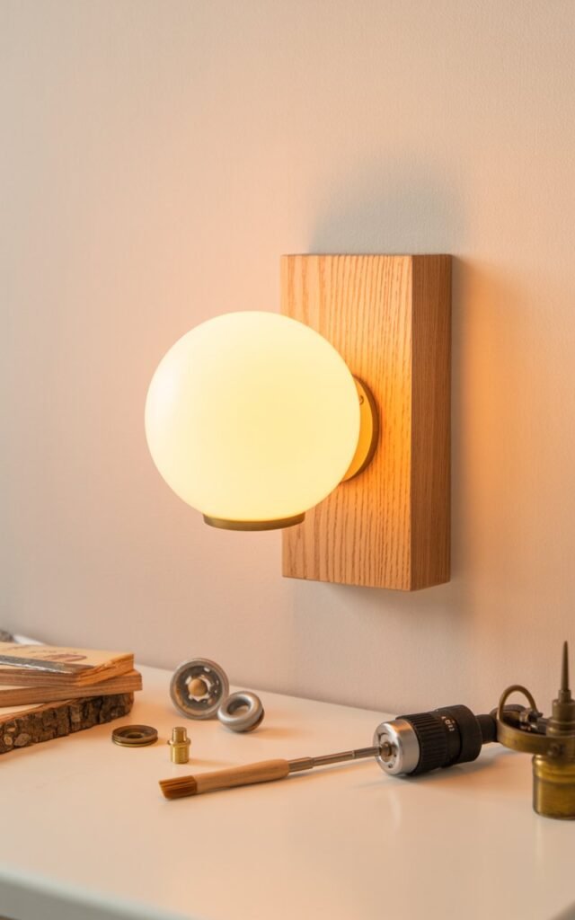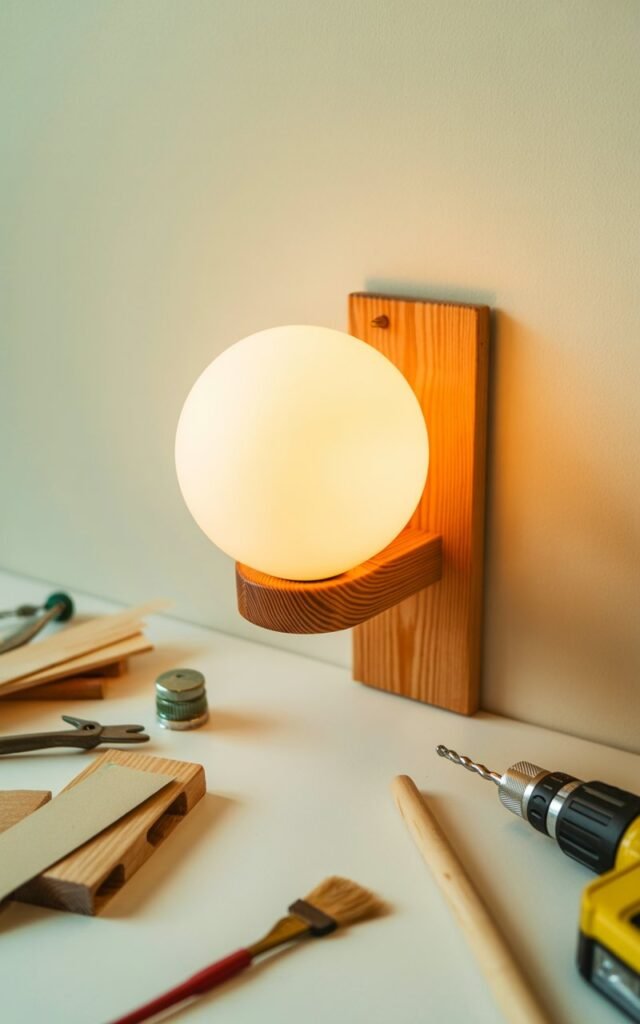DIY Wooden Globe Wall Sconce From Thrifted Finds