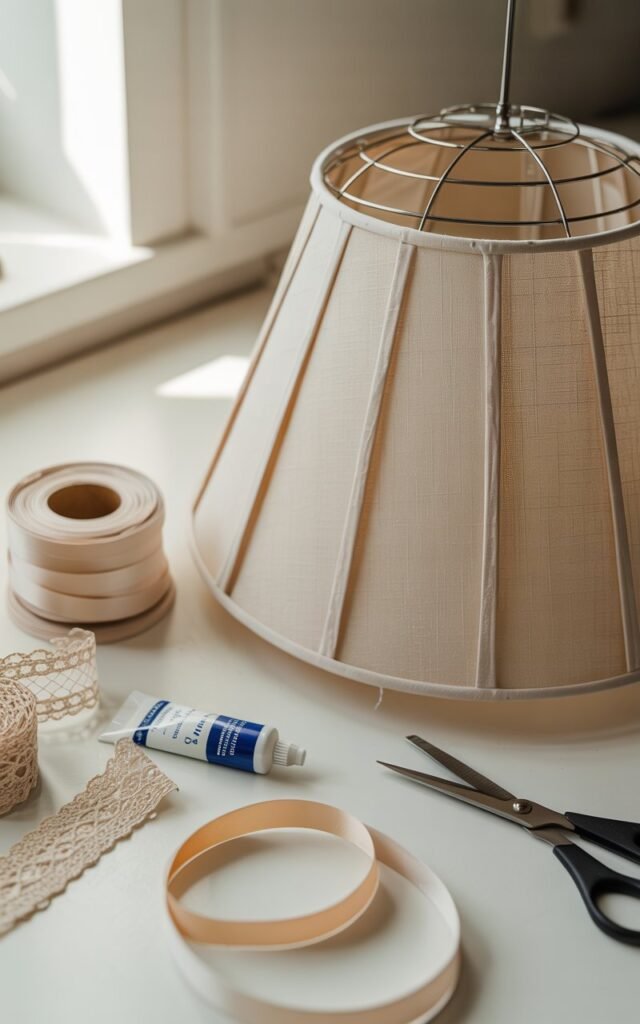 To tuck the fabric inside the shade, I used hot glue for better control.