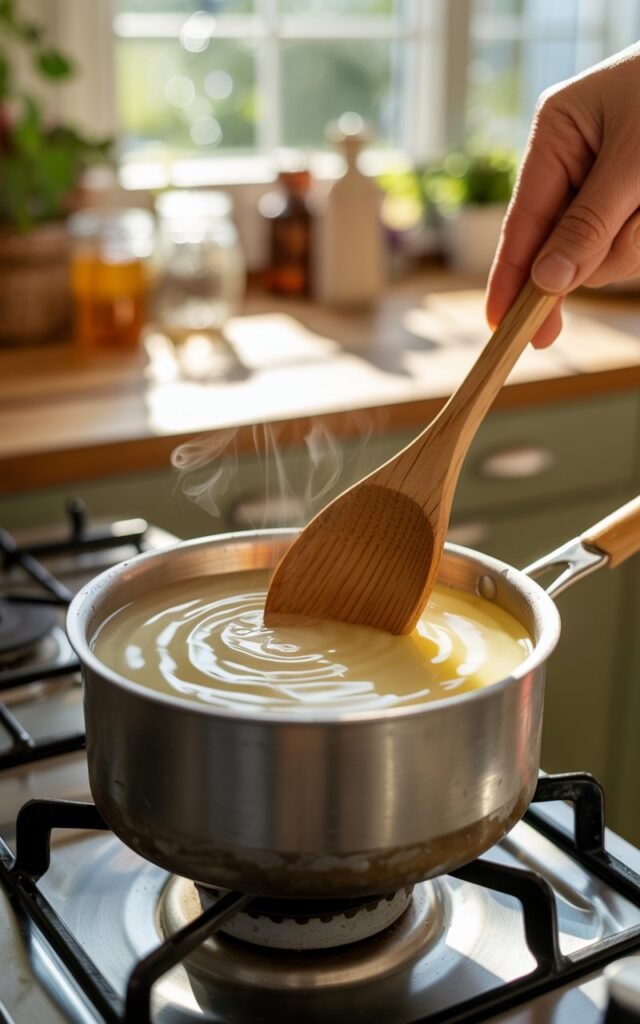 Pour in layers if you’re making multiple candles at once or using containers with uneven shapes. Allow each layer to cool slightly before adding the next for a smooth finish.