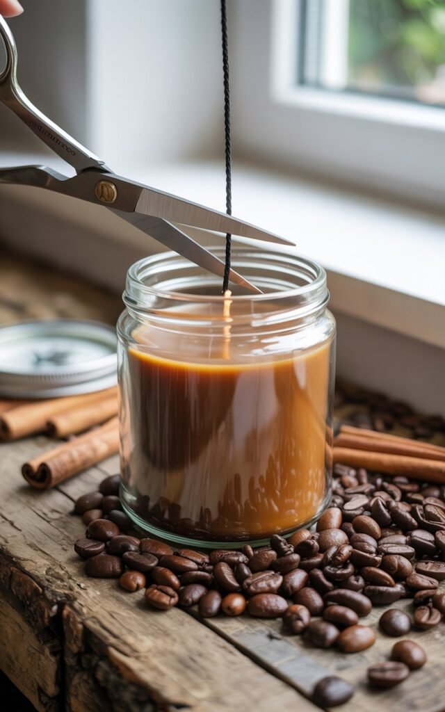 This is the step that makes your candle truly special. Whether you use coffee fragrance oil or finely ground coffee, this is where the cozy aroma begins to develop.