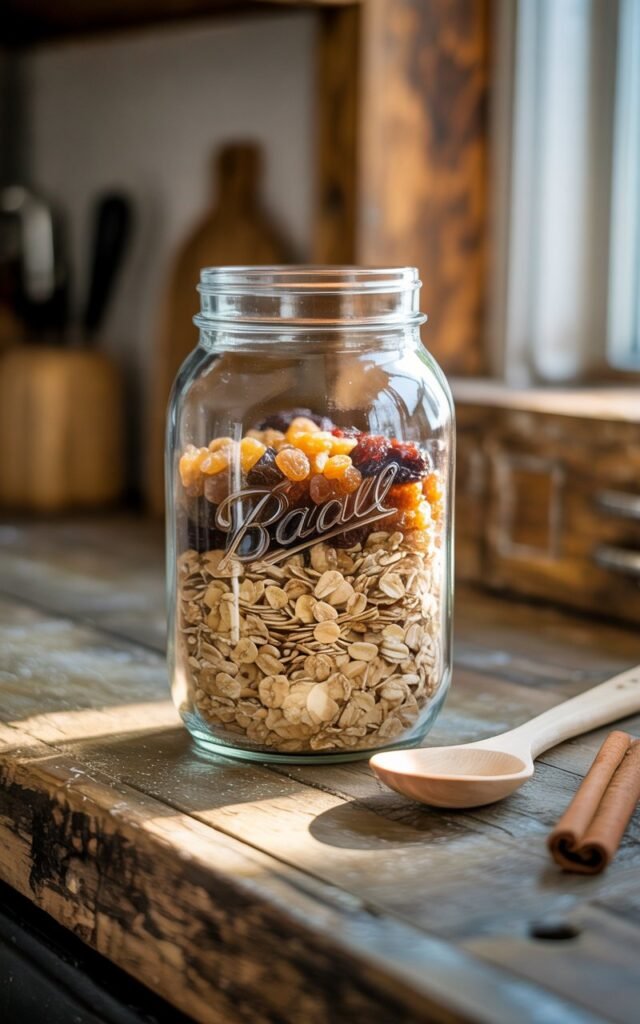 Toast the oats lightly before layering for a deeper flavor and slightly golden appearance in the jar. You can also add a small wooden spoon tied to the jar for added charm.