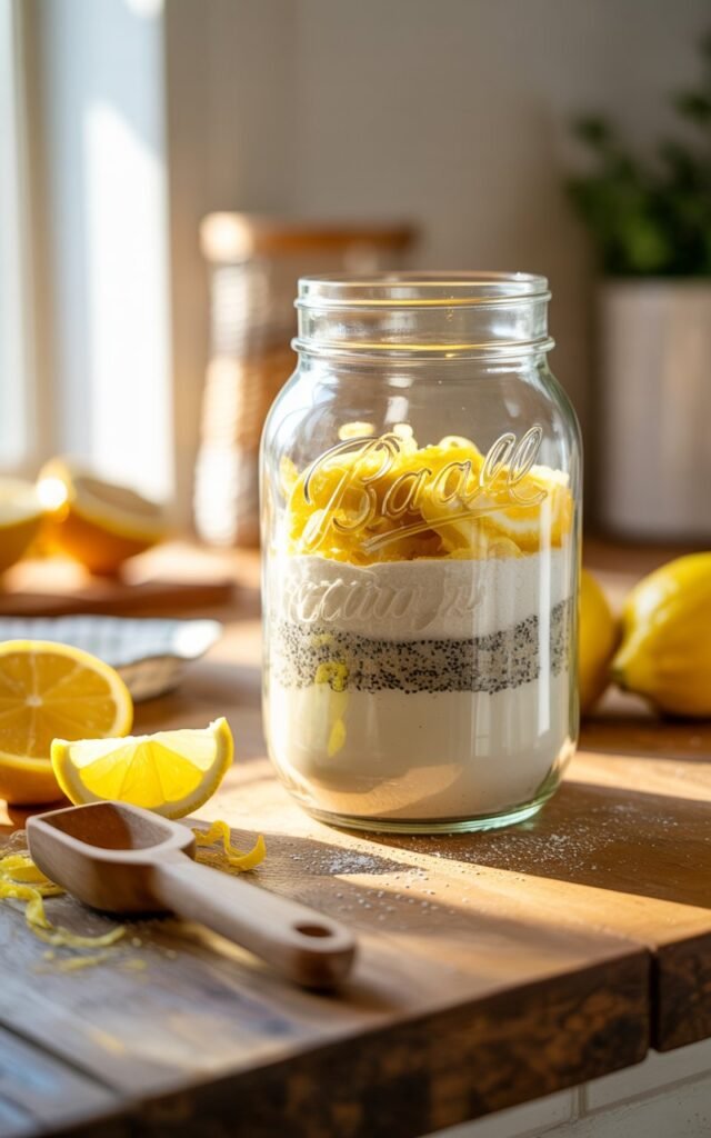 Attach instructions for mixing wet ingredients, combining, and baking. The lemon flavor will shine through once baked, making it a refreshing gift.