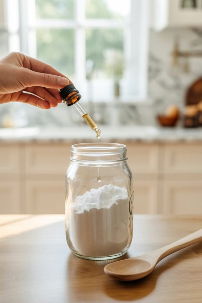 • Fill a small container with baking soda and add 5–10 drops of your favorite essential oil.