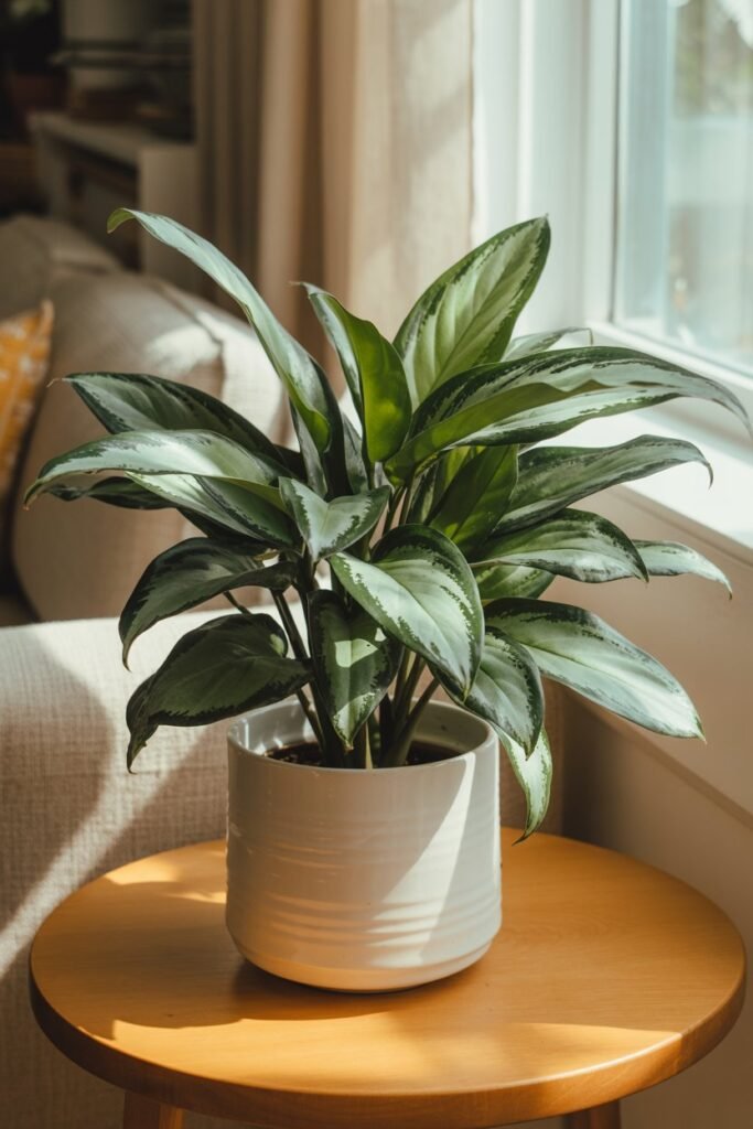 One of my favorite things about this plant is how effortlessly it elevates a room. A single tall vase with an Aglaonema cutting can act as a minimalist centerpiece that feels both natural and refined.
