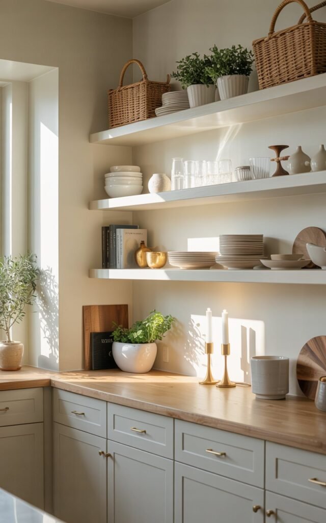 I won’t lie—open shelving looks beautiful in photos. Clean stacks of dishes, carefully placed decor, everything looking effortless and airy.